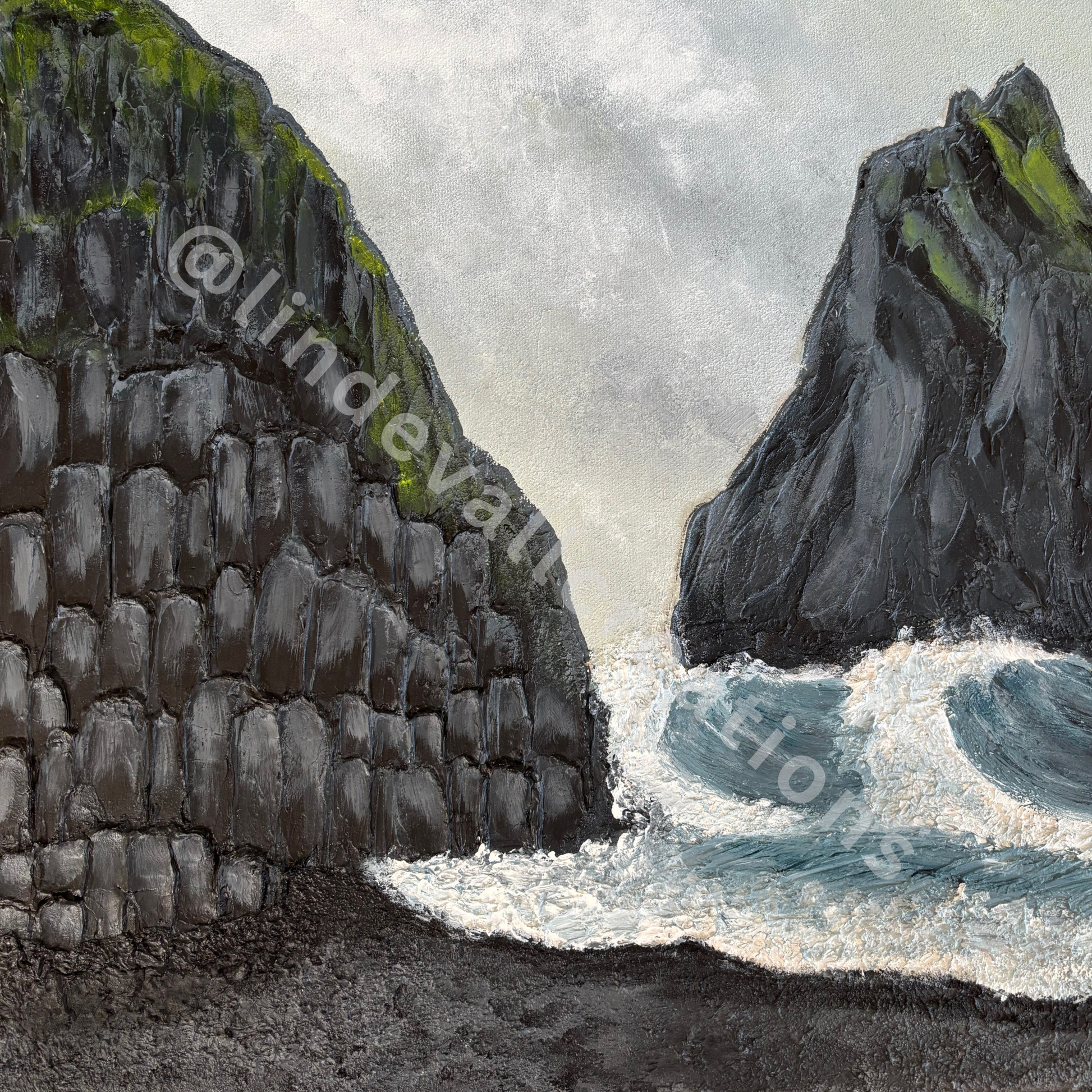 Printed on high-quality matte giclée paper to faithfully reproduce the layered texture and natural tones of the original. This piece captures Iceland’s dramatic black sand beach, where land and sea meet in cool, earthy contrast.