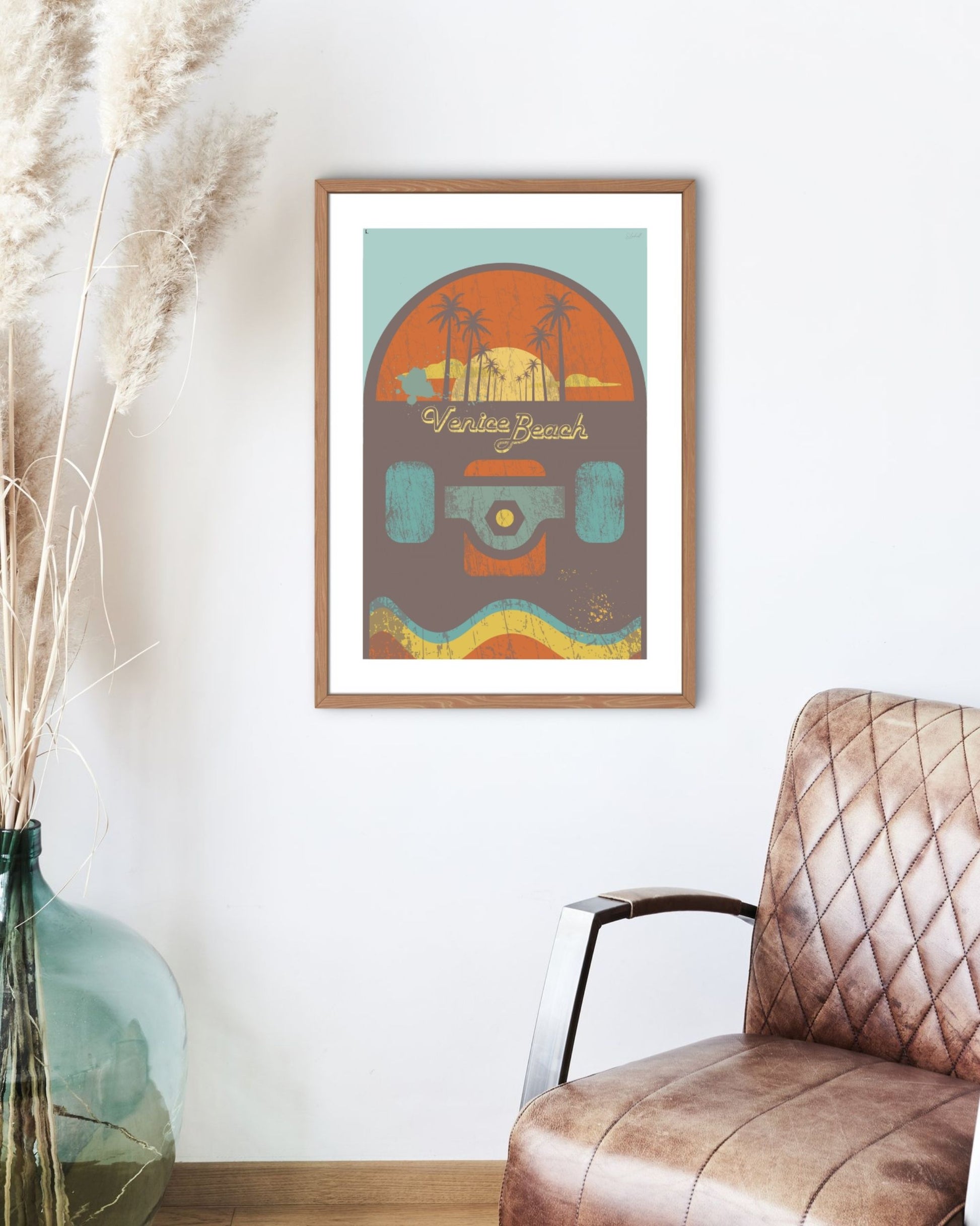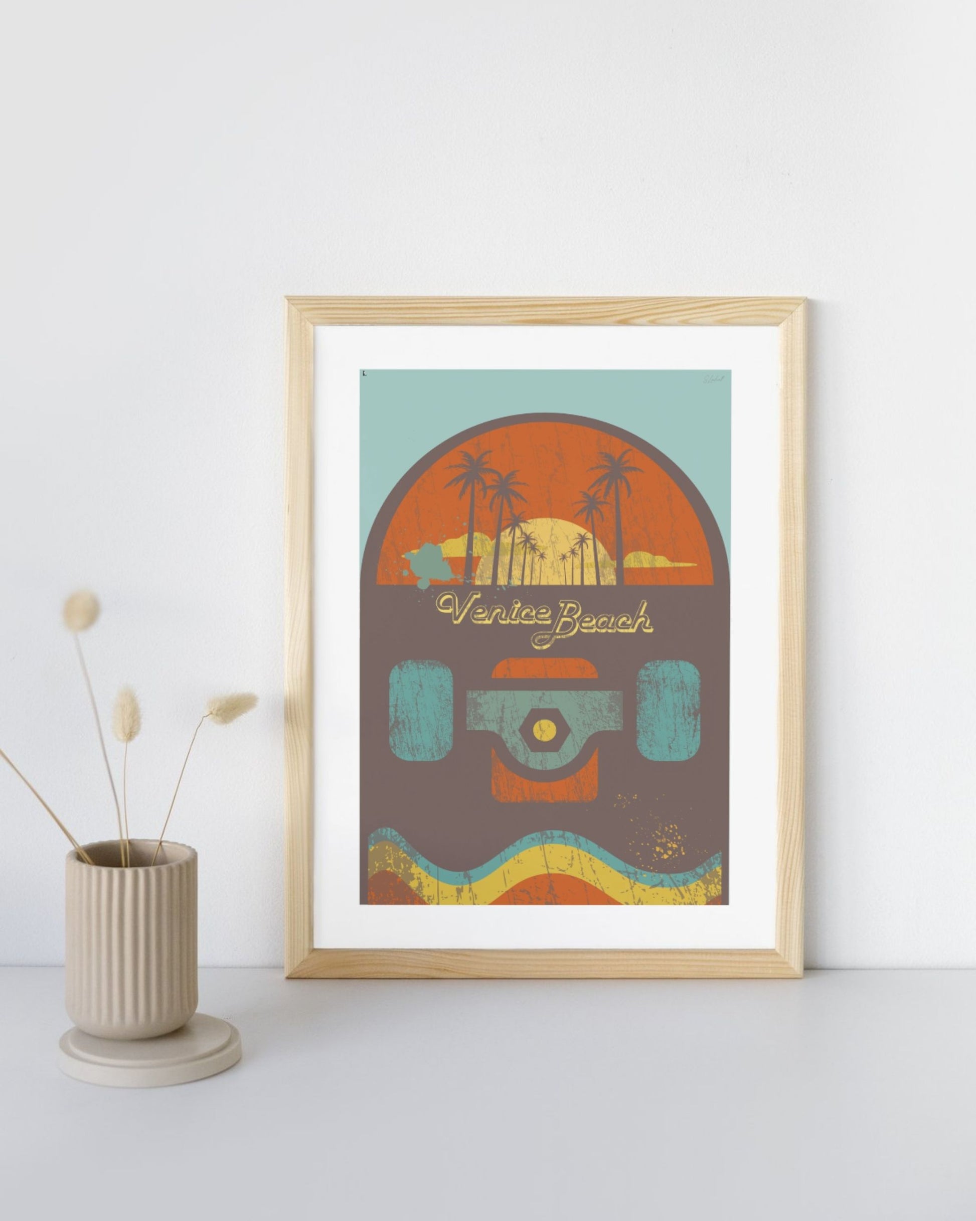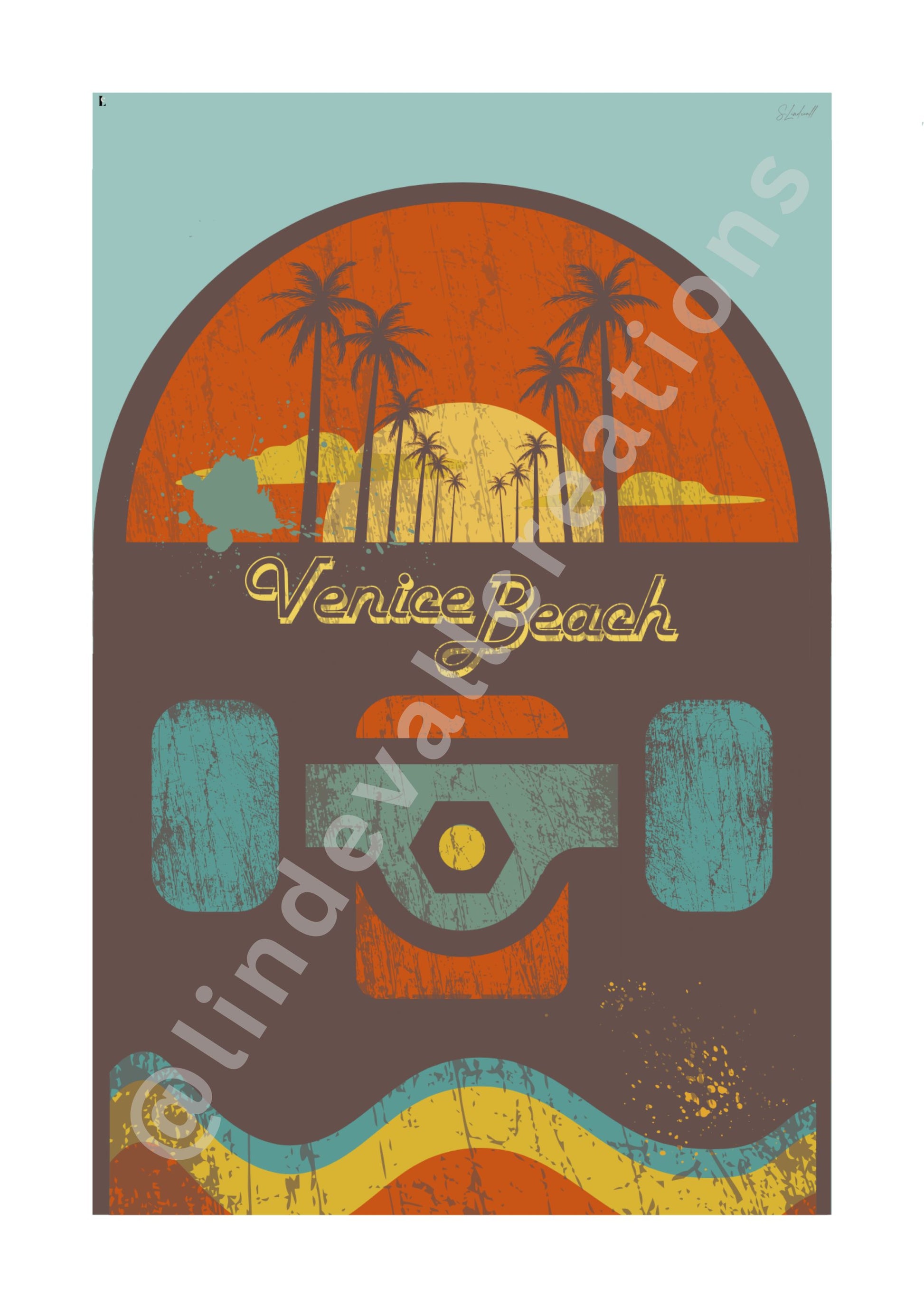 This retro-inspired design blends skate culture with sunset palms — a tribute to the iconic rhythm of Venice Beach.