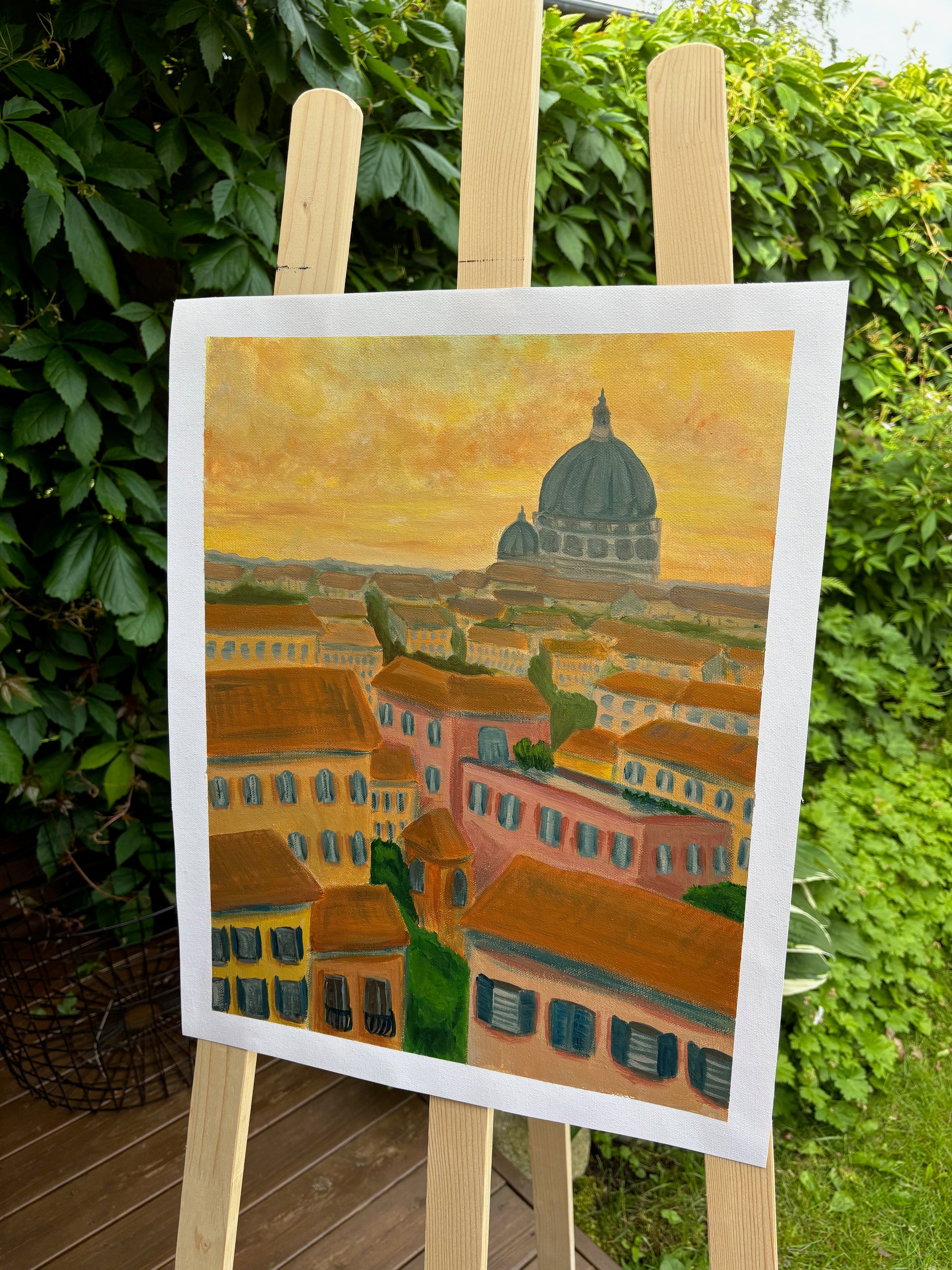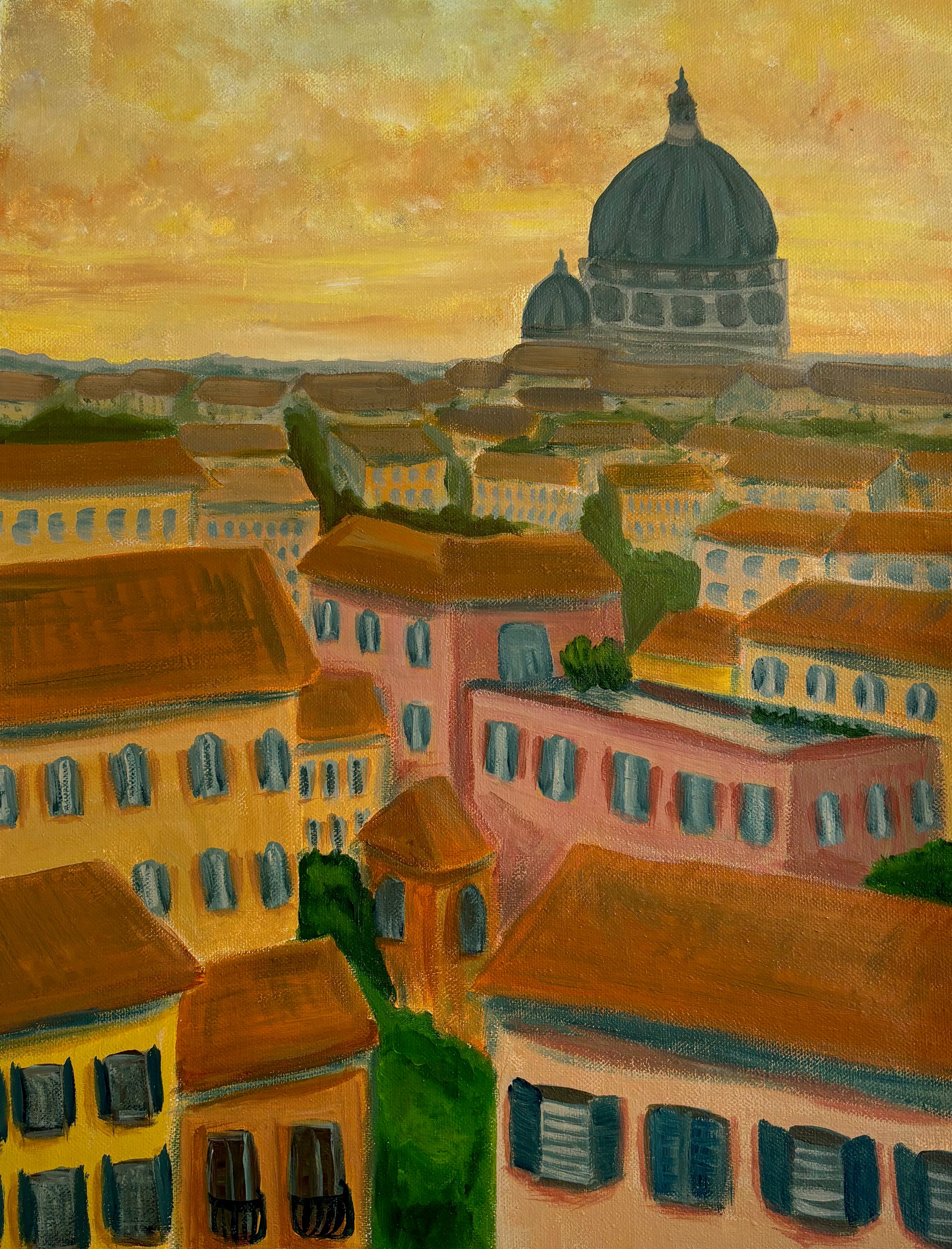 Original 40x50 cm painting of a Roman cityscape at sunset.