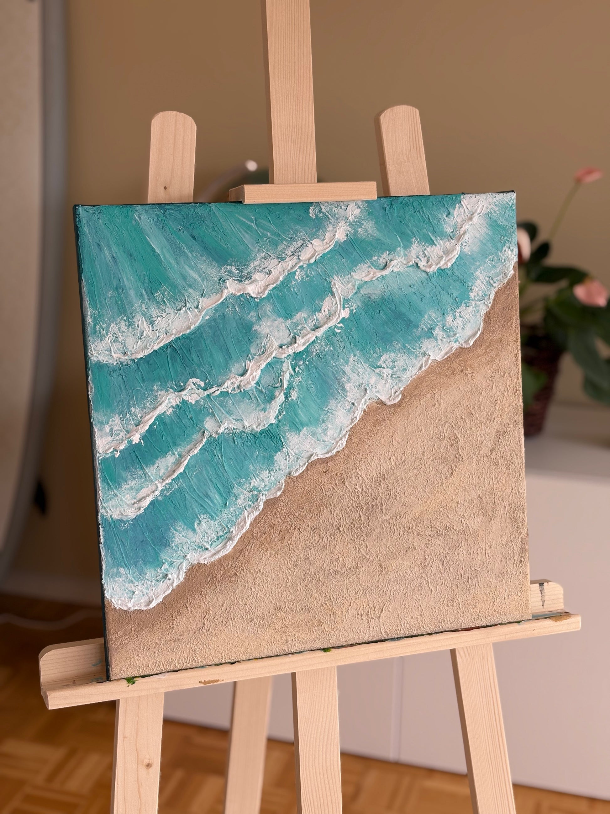 Acrylic and modeling paste on canvas, textured to echo the movement of waves and warmth of sand. Unframed, but ready to hang.